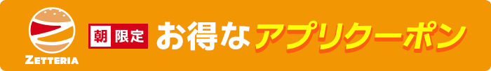 ゼッテリア公式アプリにて「モーニングクーポン」を配信しております。