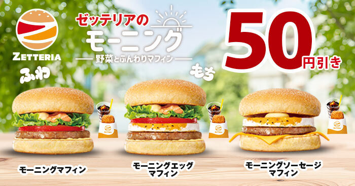 対象期間中、クーポンをご利用いただくとモーニングのマフィンセットを50円引きでお楽しみいただけます。